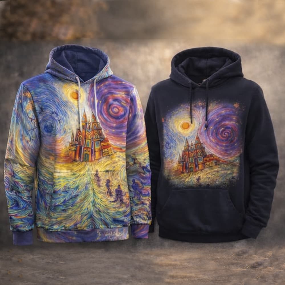 Descubre las sudaderas únicas de Camino Creations. Tanto en la versión full print como en la versión con un diseño parcial, cada una lleva la magia del camino. La sudadera full print envuelve tu cuerpo en un torbellino de color, mientras que la versión parcial destaca un delicado emblema en el pecho. Ambas son suaves, cálidas y te conectan con la esencia del viaje.