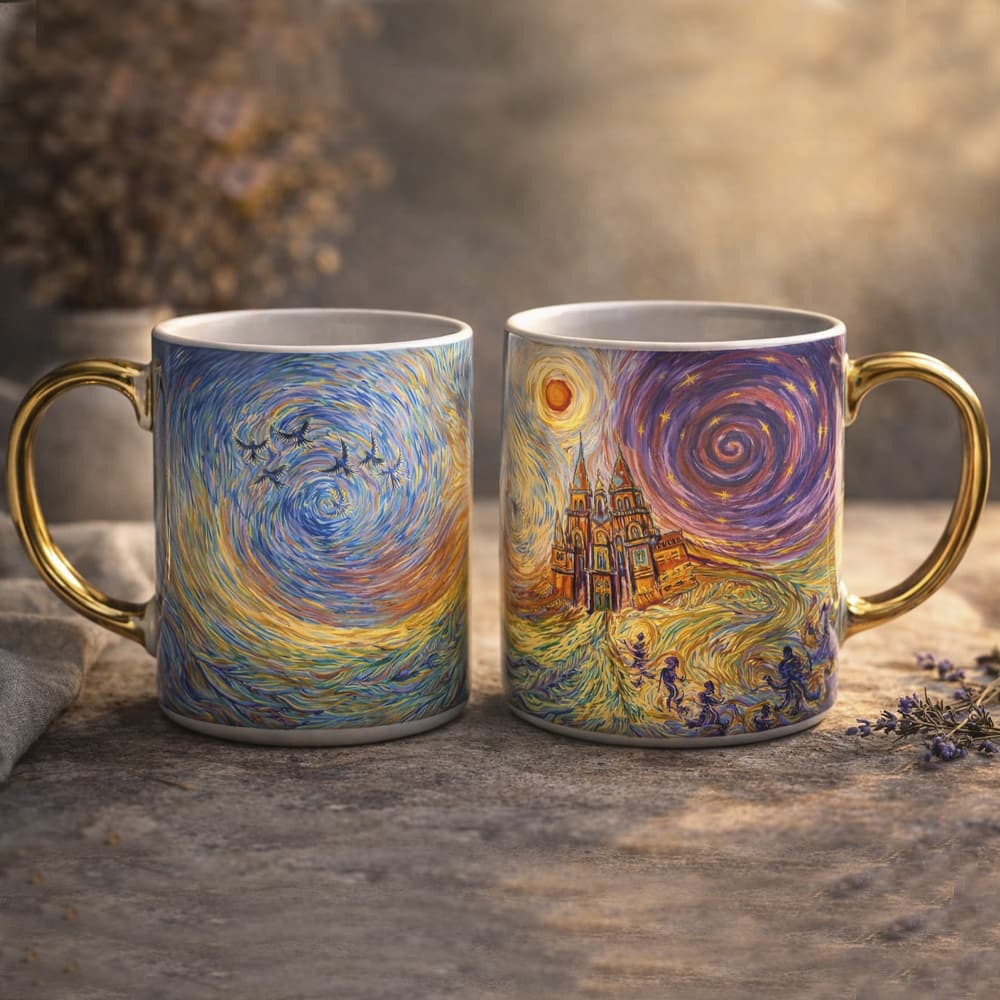 Esta taza única de Camino Creations es un símbolo de la magia del camino y la conexión cuántica que nos une.